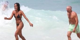 На одном из снимков 27-летняя модель позирует в ванной с обнаженной грудью и в прозрачных колготках, а 57-летний Кассель обнимает ее сзади. Другие фотографии включают кадры, где Баптиста лежит в бикини на пляже на полуобнаженном избраннике, а также снимки, на которых она позирует на кухне в микрошортах и топе, обнажающем ягодицы, рядом с Касселем, одетым только в шорты.