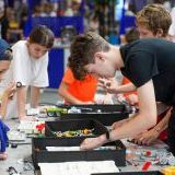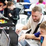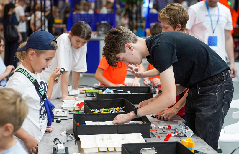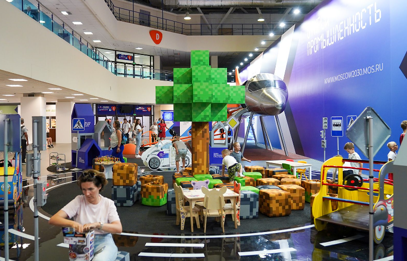 Мы возвращаемся в холл, откуда начался наш тур по будущей промышленности Москвы. В игровой зоне дети наслаждаются катанием на горке, стилизованной под самолет. У огороженной сеткой площадки выстроилась очередь: здесь можно управлять беспилотником, преодолевая препятствия, такие как арки. В зоне мастер-классов регулярно проводятся занятия по 3D-печати, созданию игровых миров, столярному делу, пайке и сборке полноценных роботов. Также на выставке читают лекции о профессиях космонавта и авиаконструктора, космических телескопах и микрочипах, промышленном дизайне и продлении человеческой жизни.