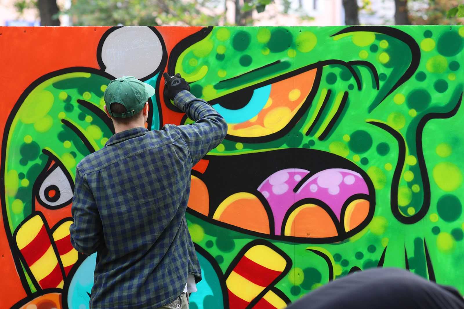 Всего было создано 20 картин размером два метра в длину и высоту каждая, для создания которых потребовалось 400 банок краски. Работы включали в себя изображение исторических высоток, сцены из мультфильмов, карикатурные комиксы и монументальные уличные рисунки, сочетающие элементы классической фрески и современного стрит-арта. Участники использовали сложные шрифты, символы, необычные цветовые сочетания, градиенты и 3D-эффекты.