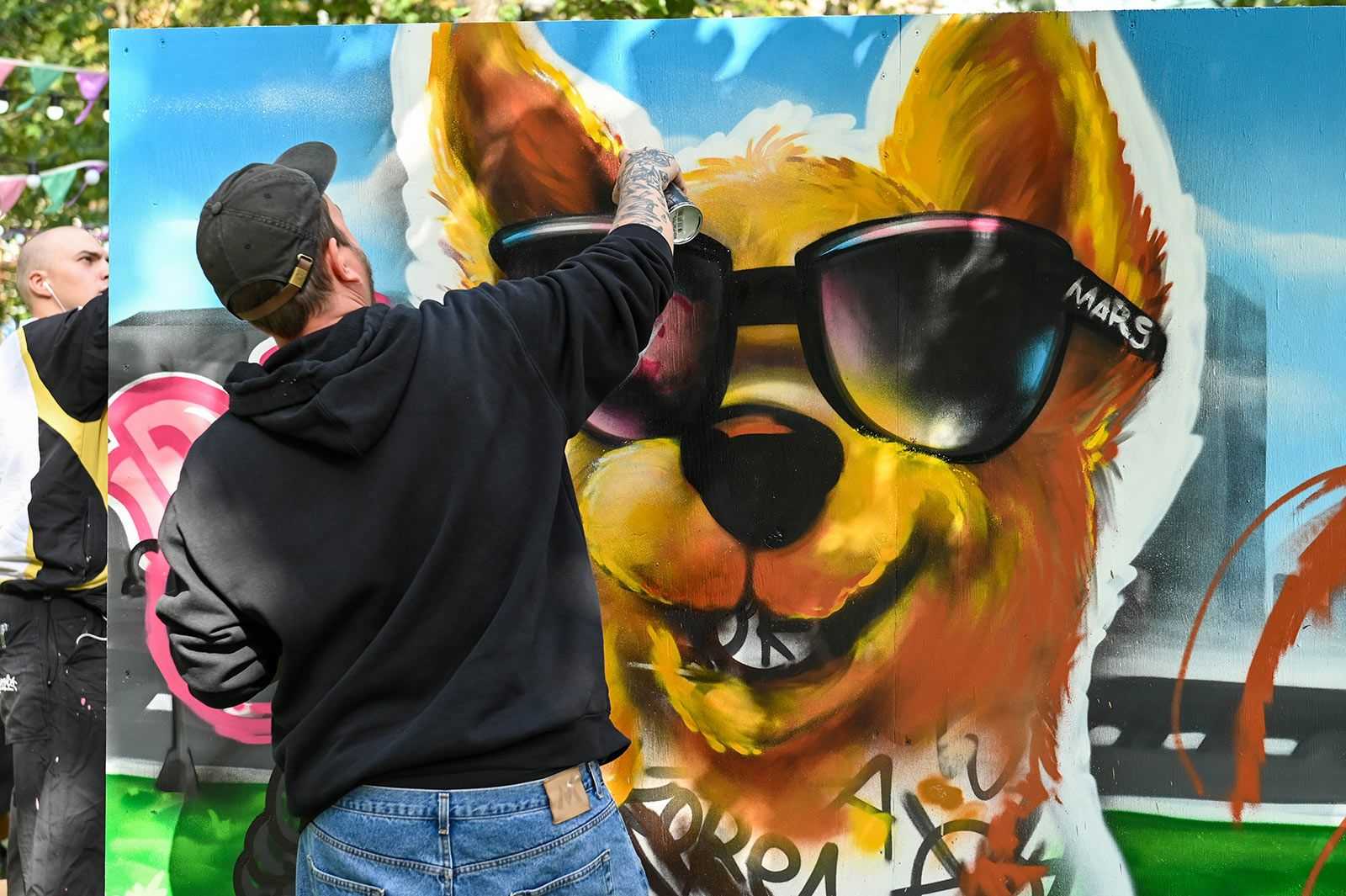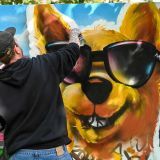 Третье место завоевала картина с улыбающимся псом в солнцезащитных очках, держащим в лапе баллончик с краской — символ «Арт-бульвара». Эту работу поддержали более 59 тысяч горожан.