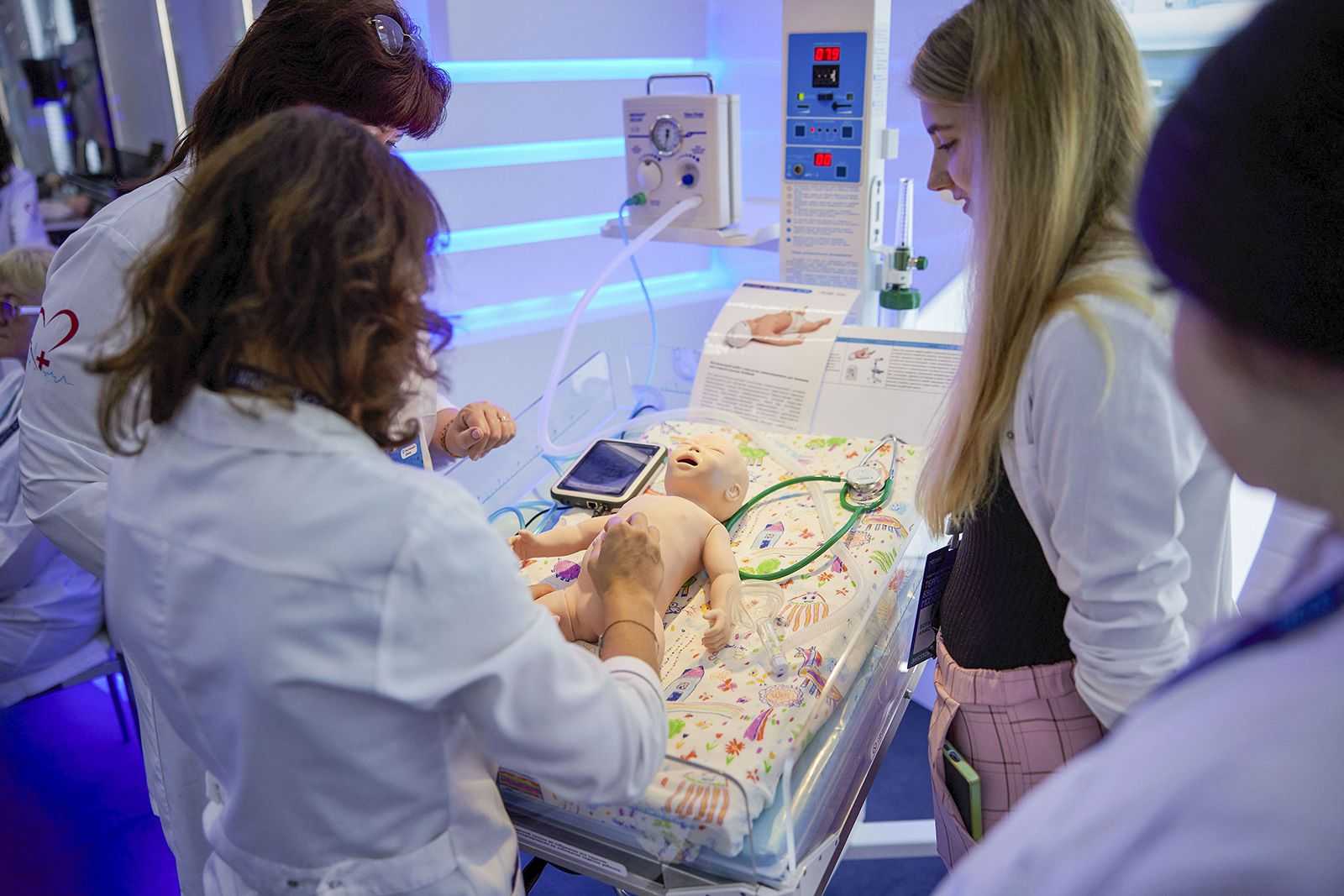 Посетители форума могут не только наблюдать, но и самостоятельно попробовать себя в роли врачей-реаниматологов, используя современное симуляционное оборудование, включая робота-симулятора новорожденного. Этот робот не только выглядит и ведет себя как настоящий младенец, но и обладает возможностью взаимодействовать с действиями врача, реагируя изменением цвета кожи, кашлем, плачем и другими функциями. Возможность проведения реанимационных мероприятий на таком роботе-симуляторе предоставляет уникальный опыт и помогает повышать квалификацию медицинского персонала.
