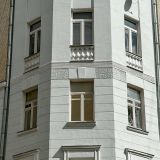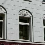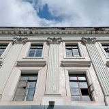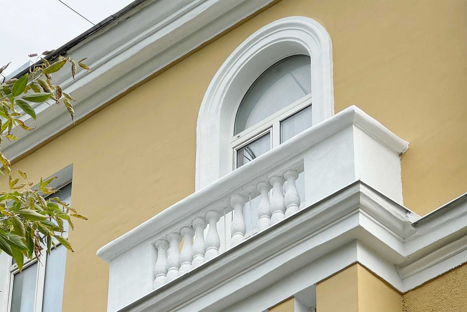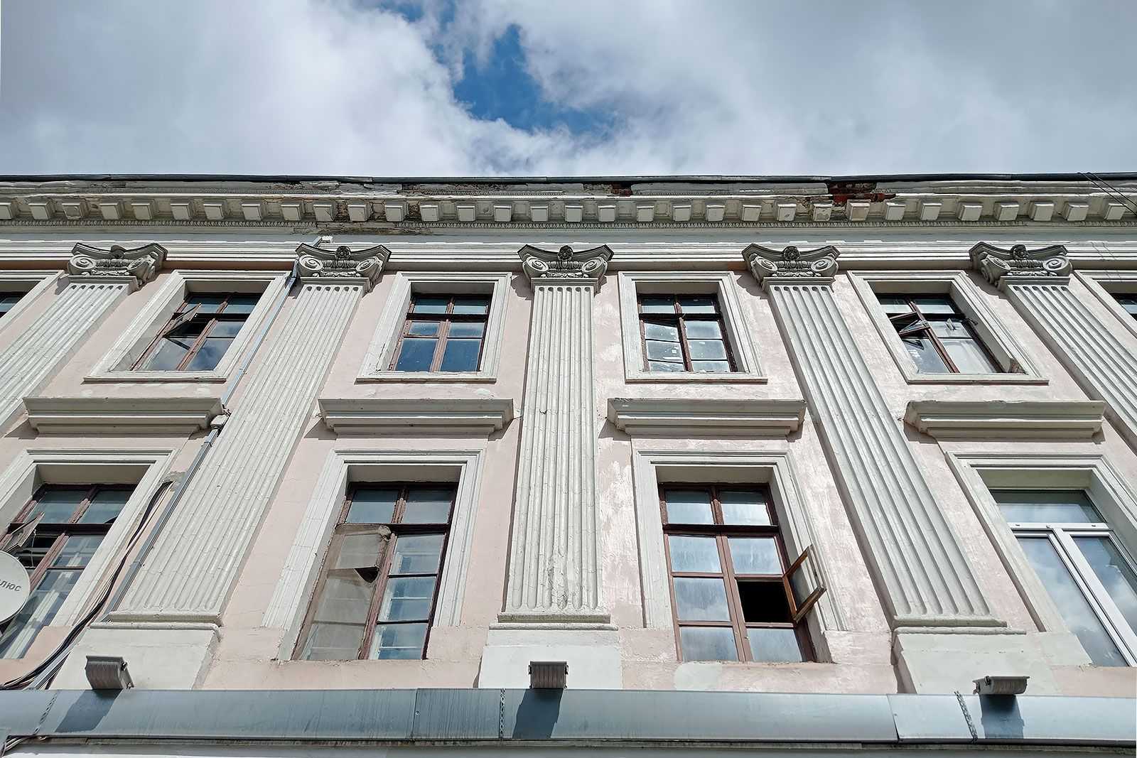 Фасад здания украшен многочисленными деталями: рустом, ризалитами, пилястрами, сандриками и карнизами. Работы включают очистку стен, восстановление декоративных элементов, штукатурку и покраску фасада, замену окон и установку новой водосточной системы.