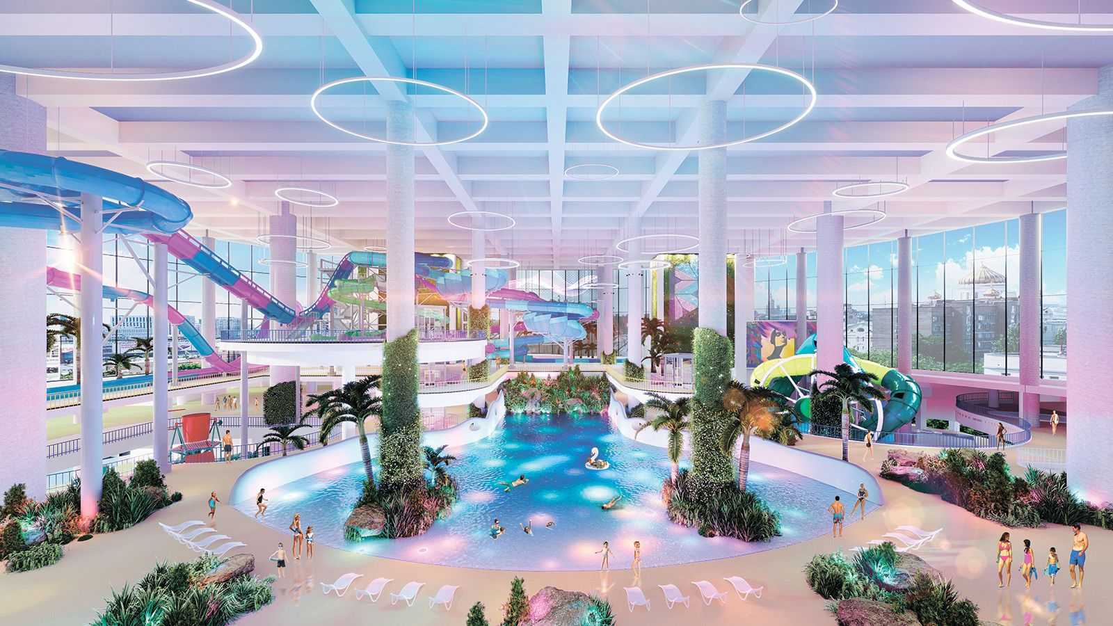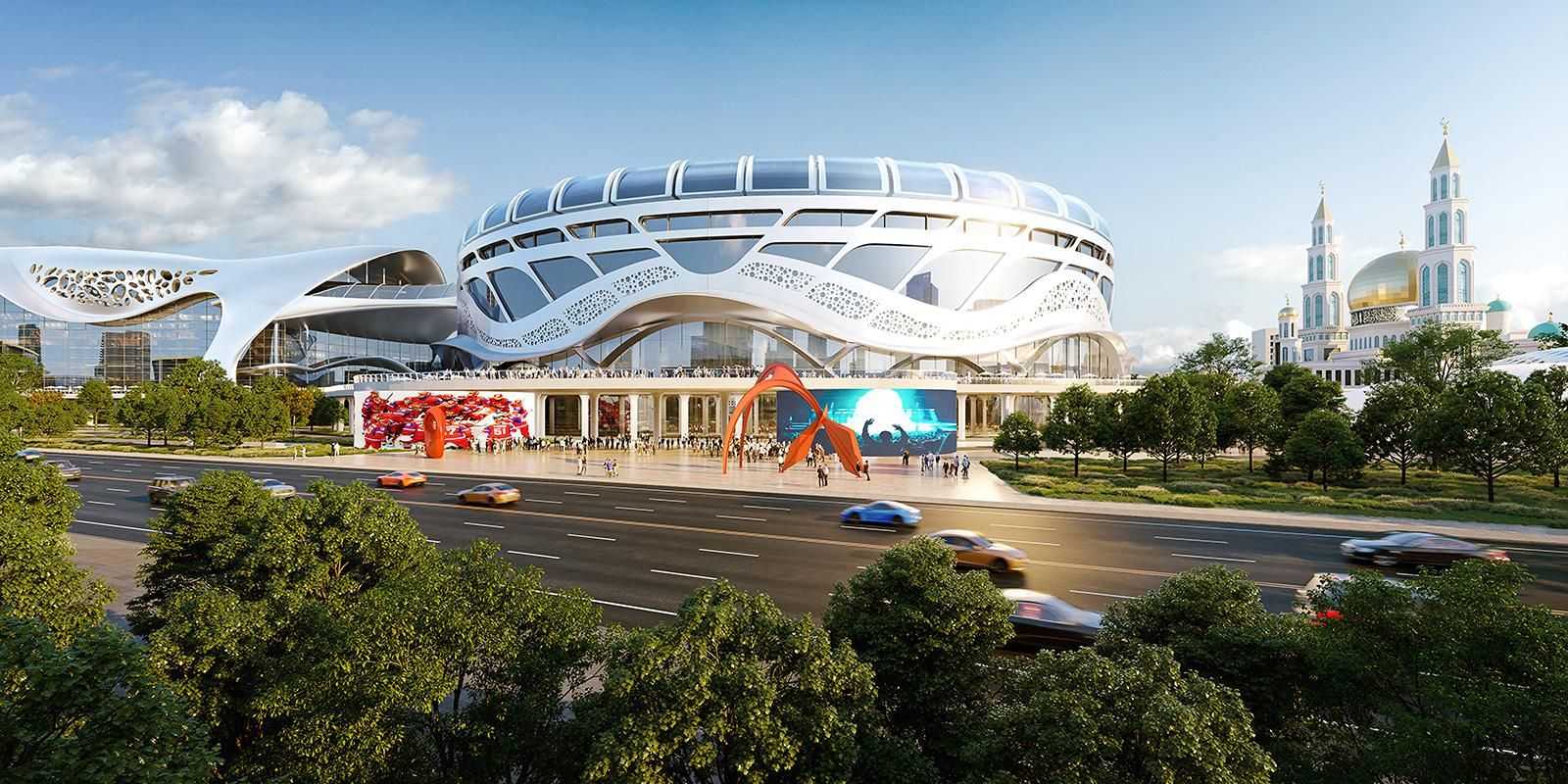 Большой концертный зал-трансформер на 12 тысяч зрителей, кинокластер с восемью современными залами, крытый беговой трек и множество зон для различных мероприятий — всё это будет частью комплекса.